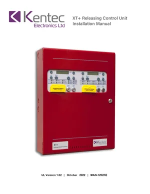 Installation, Operations, and Programming Manual for the Kentec XT+, published in 2022. Document No: MAN-1252KE, Rev: UL Version 1.02. 35 models including XT+, K1705-10, K1705-40 and 32 additional variants. Mounting and wiring instructions, user operating guides, and system software setup.