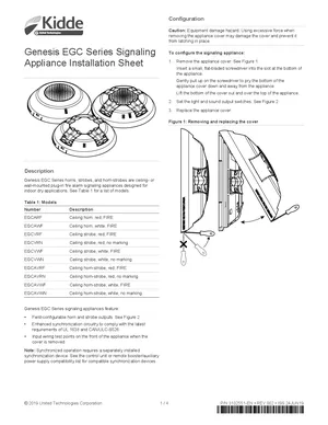 Installation Manual for the Kidde Genesis EGC Series, published in 2019. Document No: 3102551-EN, Rev: 002. 10 models including EGCARF, EGCAWF, EGCVRF and 7 additional variants. Mounting instructions, wiring diagrams, and system power-up procedures.