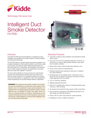 Datasheet for the Kidde FX-PDD, published in 2020. Document No: K85001-0613, Rev: Issue 1.1. 16 models including FX-PDD, SD-T8, SD-T18 and 13 additional variants. Product features, environmental operating limits, and compatibility data.