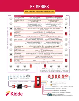 Datasheet for the Kidde FX Series, published in 2021. Document No: K85000-0373, Rev: 4. Models FX-64 and FX-1000. Product features, environmental operating limits, and compatibility data.