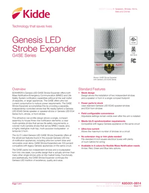 Datasheet for the Kidde G4SE Series Strobe Expander, published in 2021. Document No: K85001-0614, Rev: 1.1. 10 models including G4SE, G4SEWA-A, G4SERA-A and 7 additional variants. Product features, environmental operating limits, and compatibility data.