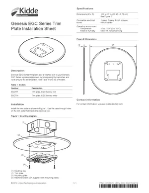 Installation Manual for the Kidde Genesis EGC Series Trim Plates, published in 2019. Document No: 3102553-EN, Rev: 001. Models EGCTR and EGCTW. Mounting instructions, wiring diagrams, and system power-up procedures.