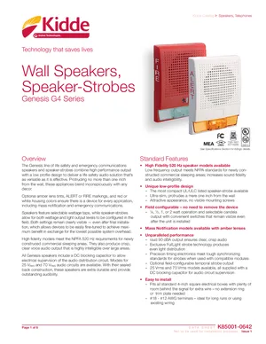 Datasheet for the Kidde Genesis G4 Series, published in 2016. Document No: K85001-0642, Rev: 1. 53 models including G4-S2, G4HFWN-S2, G4R-S2 and 50 additional variants. Engineering specifications, wiring diagrams, and mounting dimensions.