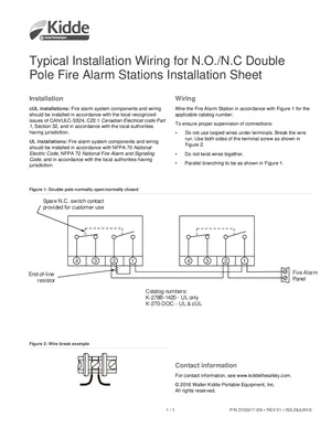 Installation Manual for the Kidde K-278B-1420 and K-270-DOC, published in 2016. Document No: 3102417-EN, Rev: 01. Models K-278B-1420 and K-270-DOC. Physical installation guide, backbox dimensions, and cabling specifications.