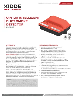 Datasheet for the Kidde KI-DDOS, published in 2024. Document No: K85001-2006, Rev: Issue 1. 17 models including KI-DDOS, SD-T8, SD-T18 and 14 additional variants. Engineering specifications, wiring diagrams, and mounting dimensions.