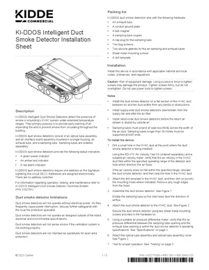 Installation Manual for the Kidde KI-DDOS, published in 2023. Document No: 3102775-EN, Rev: 001. 17 models including KI-DDOS, SD-T8, SD-T18 and 14 additional variants. Mounting instructions, wiring diagrams, and system power-up procedures.