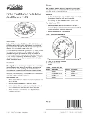Installation Manual for the Kidde KI-IB (French), published in 2017. Document No: 3102477-FR, Rev: 001. Models KI-IB, GSA-LED and GSA-TS. Physical installation guide, backbox dimensions, and cabling specifications.