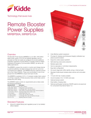 Datasheet for the Kidde MIRBPS6A and MIRBPS10A, published in 2021. Document No: K85005-0125, Rev: 1.2. Models MIRBPS6A and MIRBPS10A. Detailed technical specifications, electrical ratings, and agency listings.