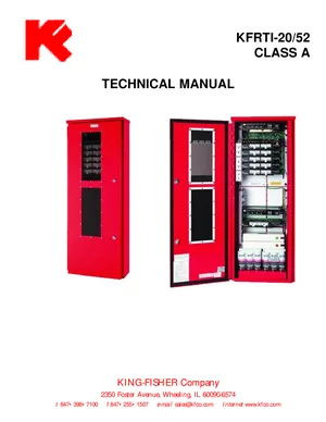 Installation, Operations, and Programming Manual for the Kingfisher KFRTI-20/52 Class A, published in 2001. Document No: 75853, Rev: 05/01. Models KFRTI-20/52, KFRTI-20 and KFRTI-52. Complete system installation, daily operation procedures, and detailed programming configurations.