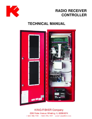 Installation, Operations, and Programming Manual for the Kingfisher Radio Receiver Controller, published in 2005. Document No: 75406, Rev: 04/05. Model Radio Receiver Controller. Hardware installation, alarm/fault management, and advanced system configuration.