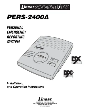 Installation, Operations, and Programming Manual for the Linear PERS-2400A, published in 2002. Document No: 218266, Rev: C. 16 models including PERS-2400A, PERS-2400, VB-4 and 13 additional variants. Mounting and wiring instructions, user operating guides, and system software setup.