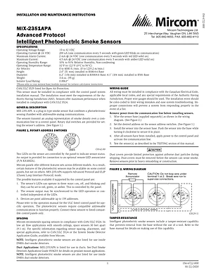Installation Manual for the Mircom MIX-2351APA, published in 2020. Document No: I56-6722-000. Model MIX-2351APA. Hardware installation, terminal connections, and environmental requirements.