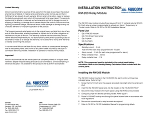 Installation Manual for the Mircom RM-263. Document No: LT-2018MIR, Rev: A. Model RM-263. Hardware installation, terminal connections, and environmental requirements.