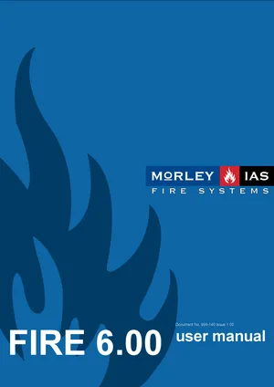 Operations and Programming Manual for the Morley-IAS FIRE 6.00. Document No: 996-140, Rev: 1.00. 7 models including FIRE 6.00, ZX1, ZX1E and 4 additional variants. Alarm management and database configuration settings.