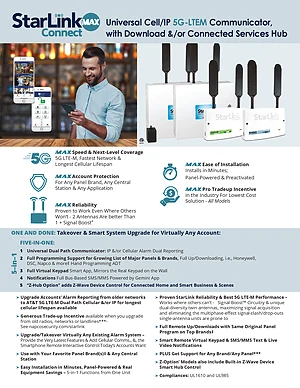 Datasheet for the Napco StarLink Connect, published in 2022. Document No: A815. 8 models including SLE-MAXA-C, SLE-MAXV-C, SLE-MAXA-Z and 5 additional variants. Detailed technical specifications, electrical ratings, and agency listings.