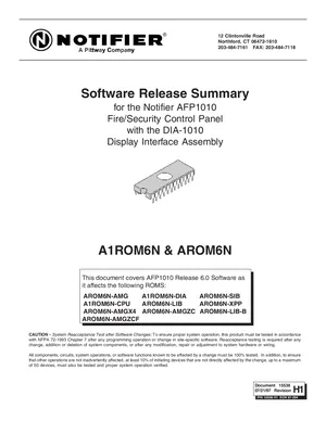 Technical Reference Manual for the Notifier A1ROM6N and AROM6N, published in 1997. Document No: 15538, Rev: H1. 22 models including AFP1010, DIA-1010, A1ROM6N and 19 additional variants. Comprehensive system reference, electrical characteristics, and interface details.