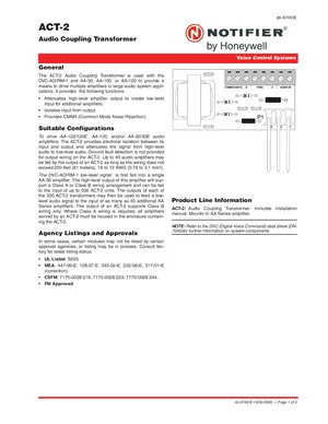 Datasheet for the Notifier ACT-2, published in 2009. Document No: dn-6749, Rev: B. 7 models including ACT-2, AA-120, AA-120E and 4 additional variants. Detailed technical specifications, electrical ratings, and agency listings.
