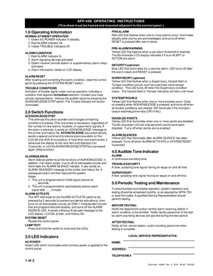 Manual for the Notifier AFP-400 Operating Instructions, published in 1995. Document No: 50364, Rev: A. 7 models including AFP-400, LCD-80, CMX-1 and 4 additional variants. Capabilities, specifications summary, and usage notes.