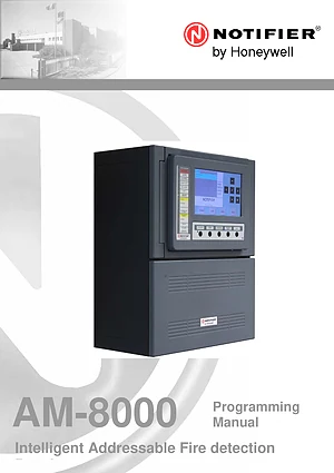 Programming Manual for the Notifier AM-8000. Document No: M-160.2-AM8000-ENG, Rev: A.1. Model AM-8000. System configuration, zone programming, and cause-and-effect logic.