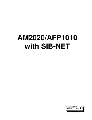 Installation Manual for the Notifier AM2020/AFP1010 with SIB-NET, published in 1995. Document No: 15094, Rev: C. 34 models including AM2020, AFP1010, SIB-NET and 31 additional variants. Physical installation guide, backbox dimensions, and cabling specifications.