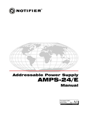 Installation, Operations, and Programming Manual for the Notifier AMPS-24, published in 2004. Document No: 51907, Rev: A1. Models AMPS-24 and AMPS-24E. Mounting and wiring instructions, user operating guides, and system software setup.