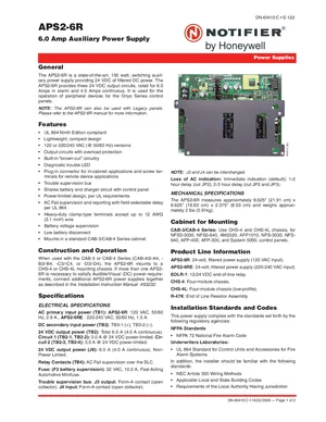 Datasheet for the Notifier APS2-6R, published in 2009. Document No: DN-60410, Rev: C. 6 models including APS2-6R, APS2-6RE, EOLR-1 and 3 additional variants. Detailed technical specifications, electrical ratings, and agency listings.