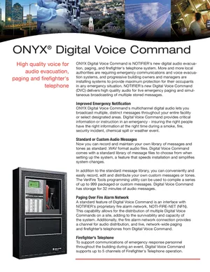 Brochure for the Notifier DVC, published in 2010. Document No: M-SS-ONYXDVC, Rev: 08/17/10. Model DVC. System capabilities, competitive advantages, and integration options.