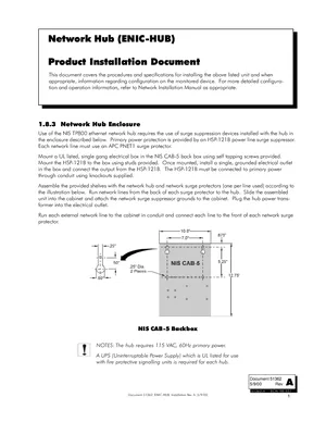 Installation Manual for the Notifier ENIC-HUB, published in 2000. Document No: 51362, Rev: A. 5 models including ENIC-HUB, NIS TP800, HSP-121B and 2 additional variants. Mounting instructions, wiring diagrams, and system power-up procedures.