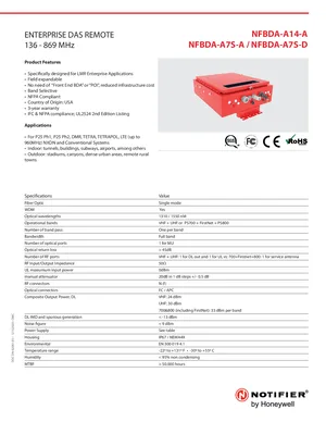 Datasheet for the Notifier Enterprise DAS Remote, published in 2020. Document No: DN-62061, Rev: 05. Models NFBDA-A14-A, NFBDA-A7S-A and NFBDA-A7S-D. Engineering specifications, wiring diagrams, and mounting dimensions.