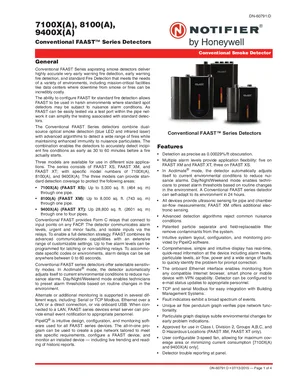 Datasheet for the Notifier FAAST Series, published in 2015. Document No: DN-60791, Rev: D. 9 models including 7100X, 7100XA, 8100 and 6 additional variants. Engineering specifications, wiring diagrams, and mounting dimensions.