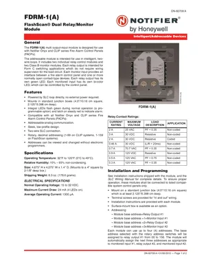 Datasheet for the Notifier FDRM-1, published in 2012. Document No: DN-60709, Rev: A. 7 models including FDRM-1, FDRM-1A, SMB500 and 4 additional variants. Detailed technical specifications, electrical ratings, and agency listings.