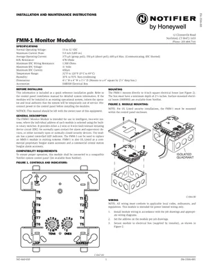 Installation Manual for the Notifier FMM-1, published in 2007. Document No: I56-3506-001. Models FMM-1 and MMX-1. Physical installation guide, backbox dimensions, and cabling specifications.