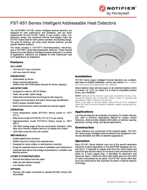 Datasheet for the Notifier FST-951 Series, published in 2019. Document No: DN-60975, Rev: B. 52 models including FST-951, FST-951A, FST-951-IV and 49 additional variants. Engineering specifications, wiring diagrams, and mounting dimensions.