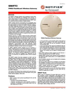Datasheet for the Notifier FWSG, published in 2015. Document No: DN-60820, Rev: C. 14 models including FWSG, FWD-200P, FWD-200ACCLIMATE and 11 additional variants. Detailed technical specifications, electrical ratings, and agency listings.