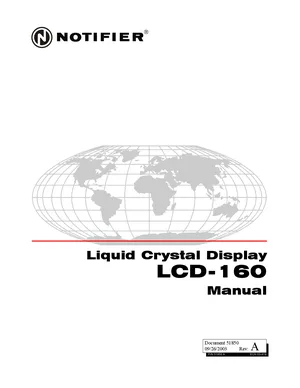 Installation, Operations, and Programming Manual for the Notifier LCD-160, published in 2003. Document No: 51850, Rev: A. 13 models including LCD-160, ABS-2D, ABS-2DR and 10 additional variants. Complete system installation, daily operation procedures, and detailed programming configurations.