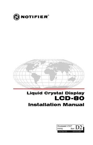 Installation, Operations, and Programming Manual for the Notifier LCD-80, published in 2002. Document No: 15037, Rev: D2. 18 models including LCD-80, AFP-200, AFP-300 and 15 additional variants. Mounting and wiring instructions, user operating guides, and system software setup.