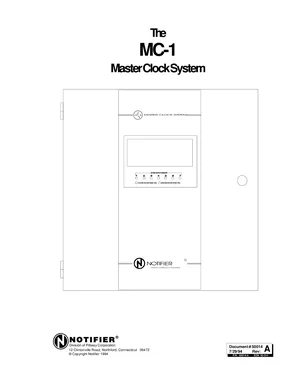 Installation, Operations, and Programming Manual for the Notifier MC-1, published in 1994. Document No: 50014, Rev: A. Models MC-1, REM-3 and SEM-1. Mounting and wiring instructions, user operating guides, and system software setup.