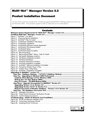 Installation Manual for the Notifier Multi-Net Manager Version 2.2, published in 2003. Document No: 51973, Rev: B. Models Multi-Net Manager, PCLTA-10 and NION. Physical installation guide, backbox dimensions, and cabling specifications.