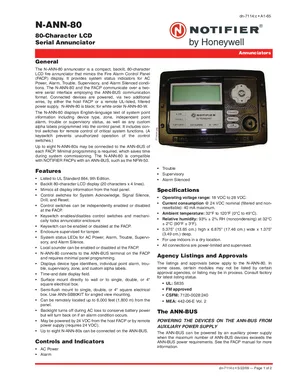 Datasheet for the Notifier N-ANN-80, published in 2009. Document No: dn-7114, Rev: c. 6 models including N-ANN-80, N-ANN-80-W, ANN-SB80KIT and 3 additional variants. Detailed technical specifications, electrical ratings, and agency listings.