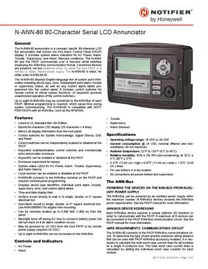 Datasheet for the Notifier N-ANN-80, published in 2018. Document No: DN-7114, Rev: D. 4 models including N-ANN-80, N-ANN-80-W, ANN-SB80KIT-B and 1 additional variants. Detailed technical specifications, electrical ratings, and agency listings.