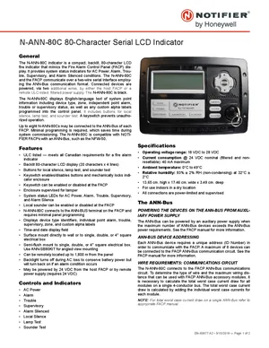 Datasheet for the Notifier N-ANN-80C, published in 2018. Document No: DN-60677, Rev: A2. Models N-ANN-80C, ANN-SB80KIT-B and ANN-SB80KIT. Product features, environmental operating limits, and compatibility data.