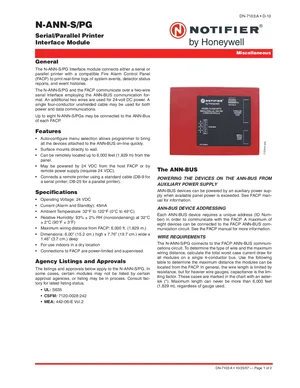 Datasheet for the Notifier N-ANN-S/PG, published in 2007. Document No: DN-7103, Rev: A. Models N-ANN-S/PG and NFW-50. Product features, environmental operating limits, and compatibility data.