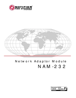 Installation, Operations, and Programming Manual for the Notifier NAM-232, published in 1999. Document No: 50038, Rev: F. Models NAM-232, NAM-232W and NAM-232F. Mounting and wiring instructions, user operating guides, and system software setup.