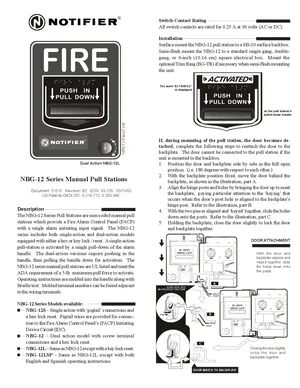 Installation and Operations Manual for the Notifier NBG-12, published in 2003. Document No: 51015, Rev: B2. 6 models including NBG-12, NBG-12S, NBG-12L and 3 additional variants. Hardware mounting, wiring, and user system management.