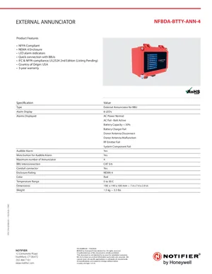 Datasheet for the Notifier NFBDA-BTTY-ANN-4, published in 2020. Document No: DN-62068.00, Rev: 00. Model NFBDA-BTTY-ANN-4. Engineering specifications, wiring diagrams, and mounting dimensions.