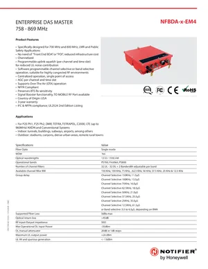 Datasheet for the Notifier NFBDA-x-EM4, published in 2020. Document No: DN-62110.05, Rev: 05. Models NFBDA-x-EM4, NFBDA-A-EM4 and NFBDA-D-EM4. Product features, environmental operating limits, and compatibility data.
