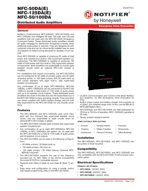Datasheet for the Notifier NFC-50DA, NFC-125DA and NFC-50/100DA, published in 2015. Document No: DN-60776, Rev: C. 16 models including NFC-50DA, NFC-50DAE, NFC-125DA and 13 additional variants. Detailed technical specifications, electrical ratings, and agency listings.