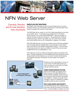 Brochure for the Notifier NFN Web Server, published in 2004. Document No: M-SS-NFN, Rev: 03/26/04. Model NFN Web Server. Product highlights, key features, and application overview.