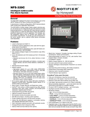 Datasheet for the Notifier NFS-320C, published in 2017. Document No: DN-60085, Rev: P. 111 models including NFS-320C, NFS-320C-FR, TR-320 and 108 additional variants. Engineering specifications, wiring diagrams, and mounting dimensions.