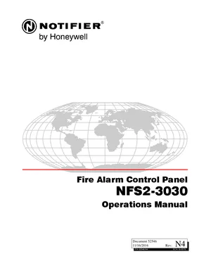 Operations Manual for the Notifier NFS2-3030, published in 2016. Document No: 52546, Rev: N4. Model NFS2-3030. User interface controls, event handling, and routine maintenance tasks.